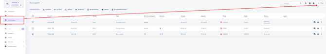 • Fahren Sie mit den Cursor zur Seitenleiste und klicken Sie auf Buchungen
