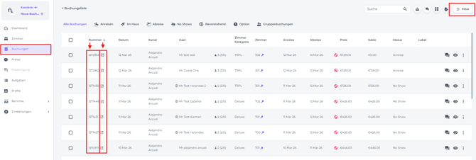 Kanal: Siehst du sofort, woher die Buchung stammt (z. B. OTA wie Booking.com oder manuelle Eingabe).