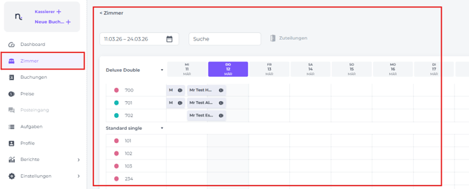 Zimmer: Zeigt die zugewiesene Zimmernummer. Falls leer, musst du eines zuweisen.