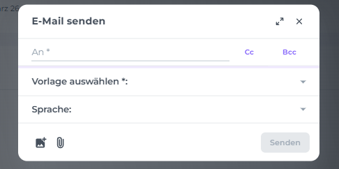 E-Mail senden: Sende Bestätigungen oder andere Vorlagen, die im Bereich „E-Mails“ erstellt wurden.