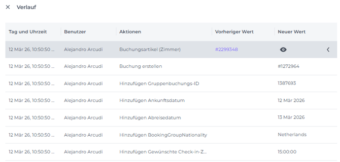 Buchungsnummer: Die eindeutige Nummer des Systems. Du kannst sie kopieren und an beliebiger Stelle im System einfügen, um diese spezifische Buchung zu finden.