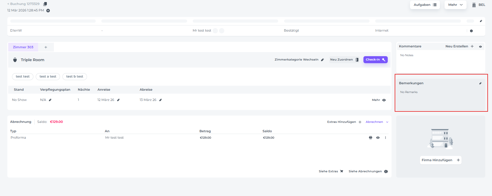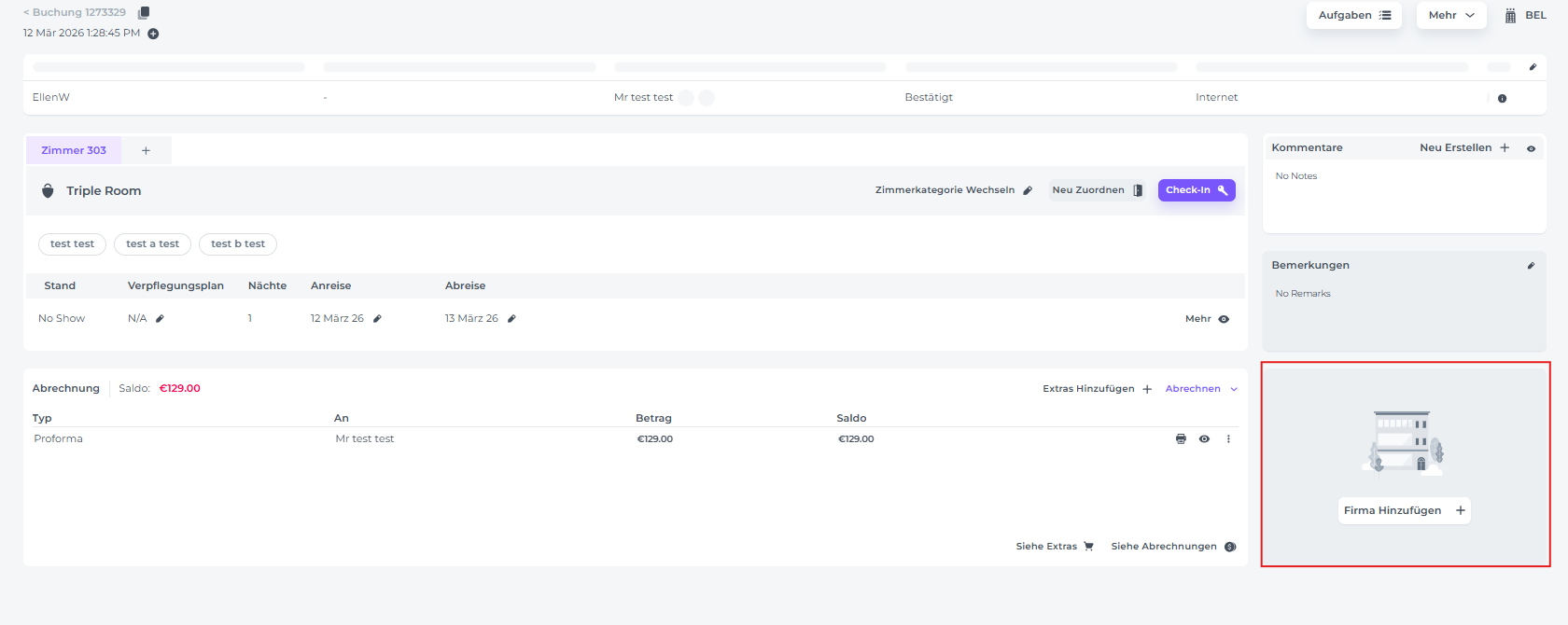 Füge der Buchung auf Wunsch ein Firmenprofil hinzu.