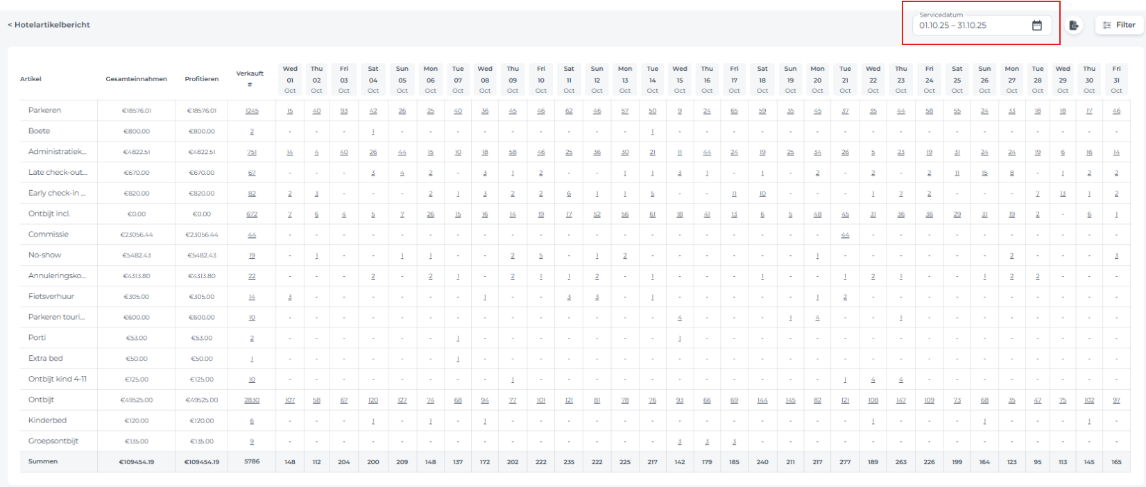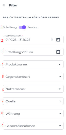 Erstellungsdatum – Wähle einen Datumsbereich aus, um die verkauften Artikel basierend auf dem Servicedatum anzuzeigen.