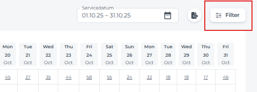 1. Schaffungs-/Service-Umschalter – Ermöglicht dir die Auswahl eines Datumsbereichs basierend auf der Ansicht, entweder: