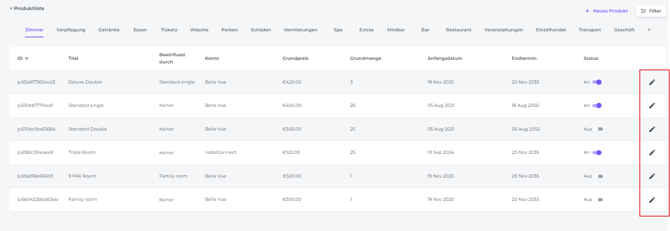 • Bearbeiten - Ändere die Produktdetails, indem du auf das Stift-Symbol klickst: