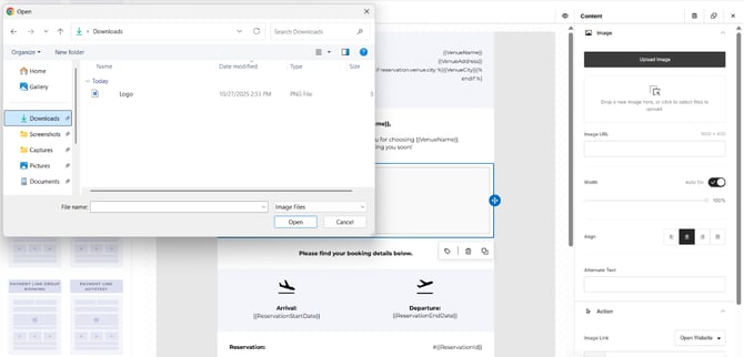 - Das Bild (Das Logo in diesem Fall) wird sofort hochgeladen und in das betreffende Feld eingefügt: