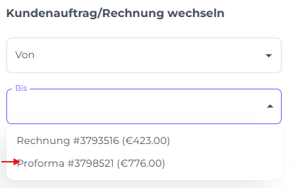 2. Die ursprüngliche Proforma stornieren: