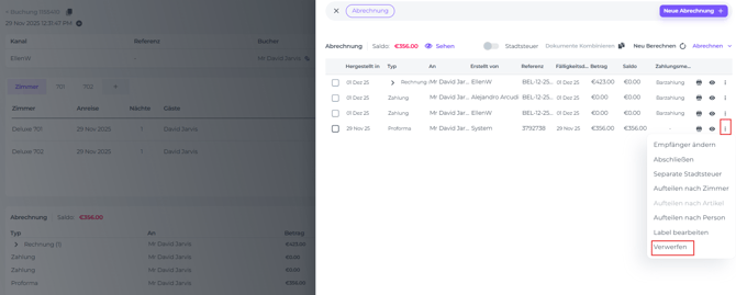 Danach sollte das Reservierungssaldo null betragen und alle Zahlungen sollten korrekt mit der neuen Proforma übereinstimmen.