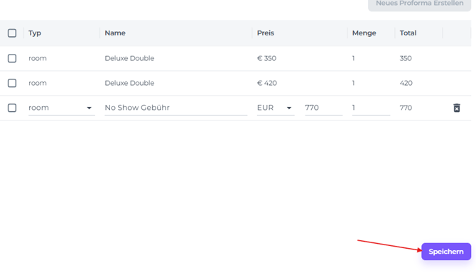 *Siehe die Schritte zur Erstellung der neuen Proforma in Schritt 3: 👉'Erstelle eine neue Proforma mit der Angabe No Show'.