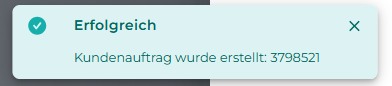 Es erscheint eine temporäre Nachricht, die bestätigt, ob die Aktion erfolgreich war: