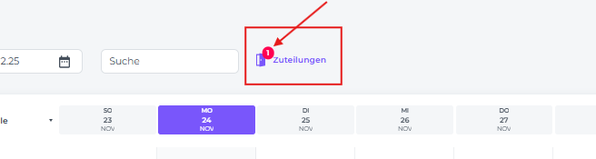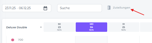 - Tatsächlich zeigt ein roter Punkt auf dem Tür-Symbol neben dem Reiter 'Zuweisung' die Anzahl der zu diesem Zeitpunkt nicht zugewiesenen Buchungen an: