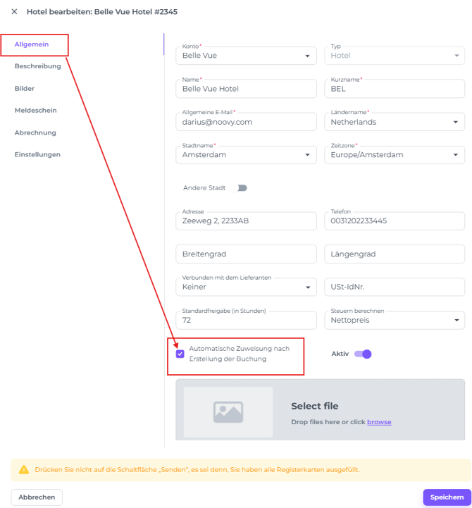 - Tu im erscheinenden Fenster auf dem Reiter Allgemein das Kästchen vor Automatisch zuweisen nach erstellter Buchung anhaken und dann Speichern:
