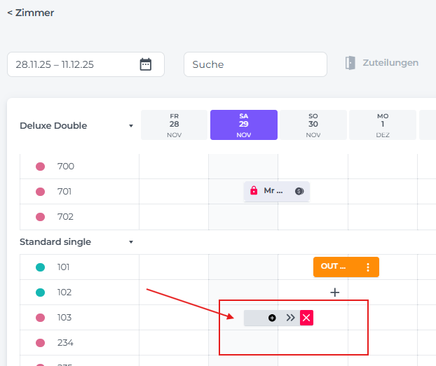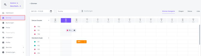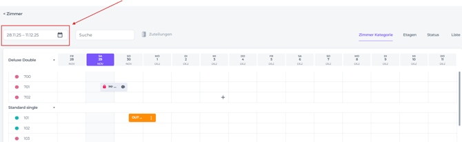 Die Einstellung eines Zimmers auf OOO oder OOS erfolgt im Zimmerkalender.