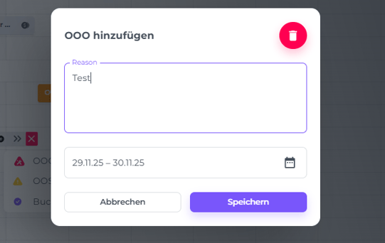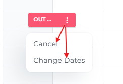 Um OOO abzubrechen oder die Daten zu ändern, klicke auf die drei Punkte in der Leiste und wähle deine Aktion aus: