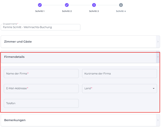 Die 4 Schritte zur Buchungserstellung, die durchgeführt werden müssen, werden im Folgenden beschrieben: