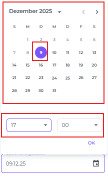Ein Pop-up fordert dich auf, das Freigabedatum und die Uhrzeit festzulegen – dies bestimmt, wann die Buchung automatisch storniert wird, wenn sie nicht manuell bestätigt wird.