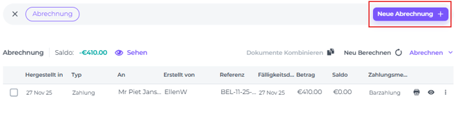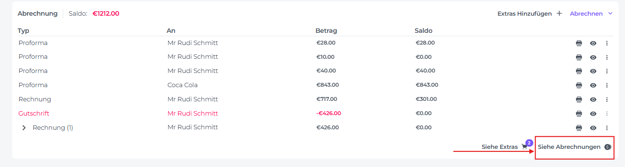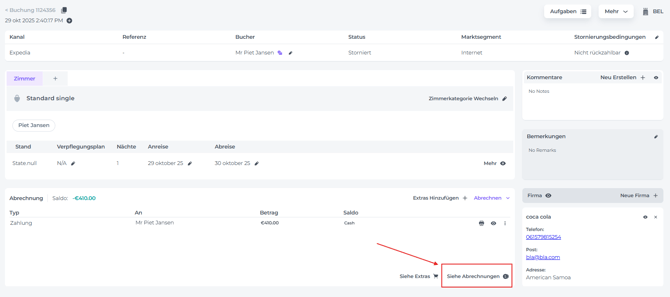 Gehe auf der Buchungsseite zum Abschnitt Siehe Abrechnungen: