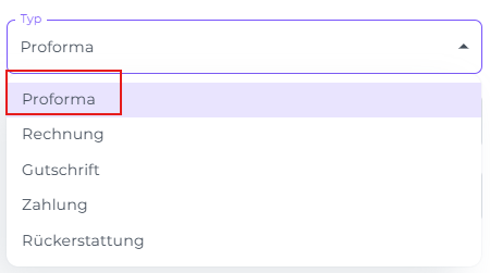- Typ - Es gibt mehrere Dokumente, die du erstellen kannst. Da dir dieser Artikel jedoch zeigt, wie man eine Proforma erstellt, wähle bitte Proforma aus: