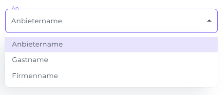 - Anbietername - Wenn es mehrere Gäste in der Buchung gibt, kannst du auswählen, welcher Gast als Zahlungspflichtiger auf der Proforma/Rechnung markiert werden soll.