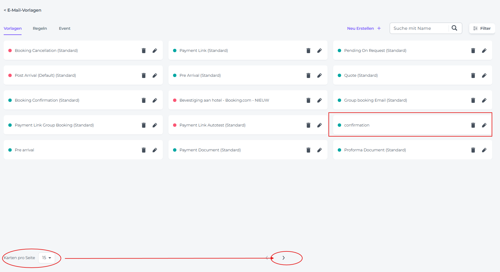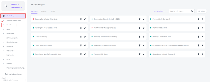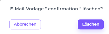 Mit der E-Mail-Funktion kannst du verschiedene E-Mail-Vorlagen erstellen, die automatisch oder manuell versendet werden können. Wenn eine E-Mail-Vorlage nicht mehr benötigt wird, kannst du sie mit den folgenden Schritten löschen.