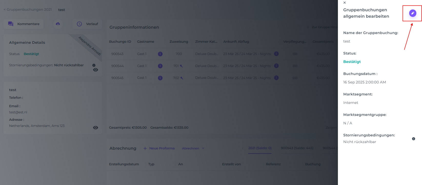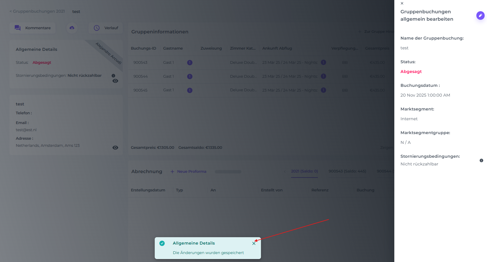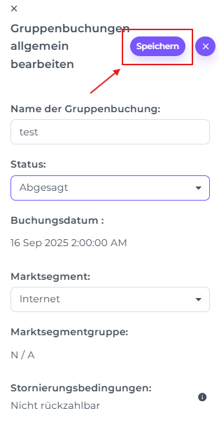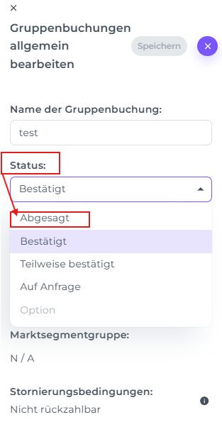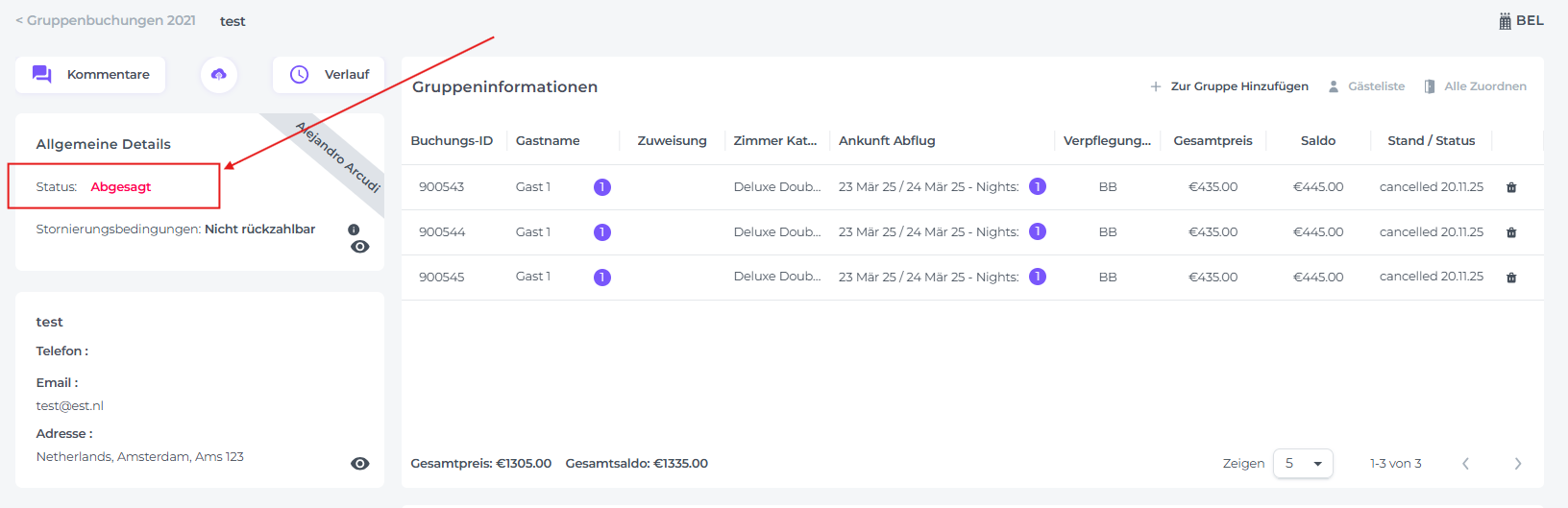 Führe die folgenden Schritte aus, um den Status einer Gruppenbuchung auf Storniert zu ändern:
