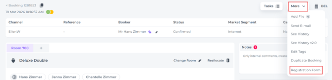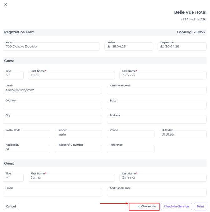 Wenn Gäste das Tool genutzt haben, kann dein Rezeptionsteam dies im Registrierungsformular sehen: