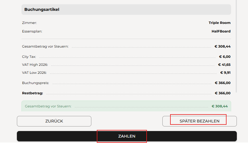 *Später Bezahlen: Ermöglicht den Abschluss des Check-ins ohne sofortige Zahlung.