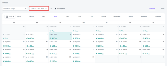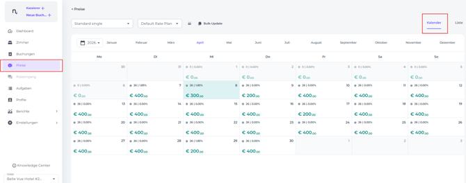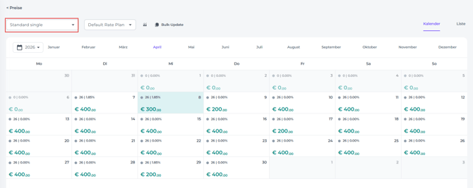 Preise über die Kalenderansicht anpassen