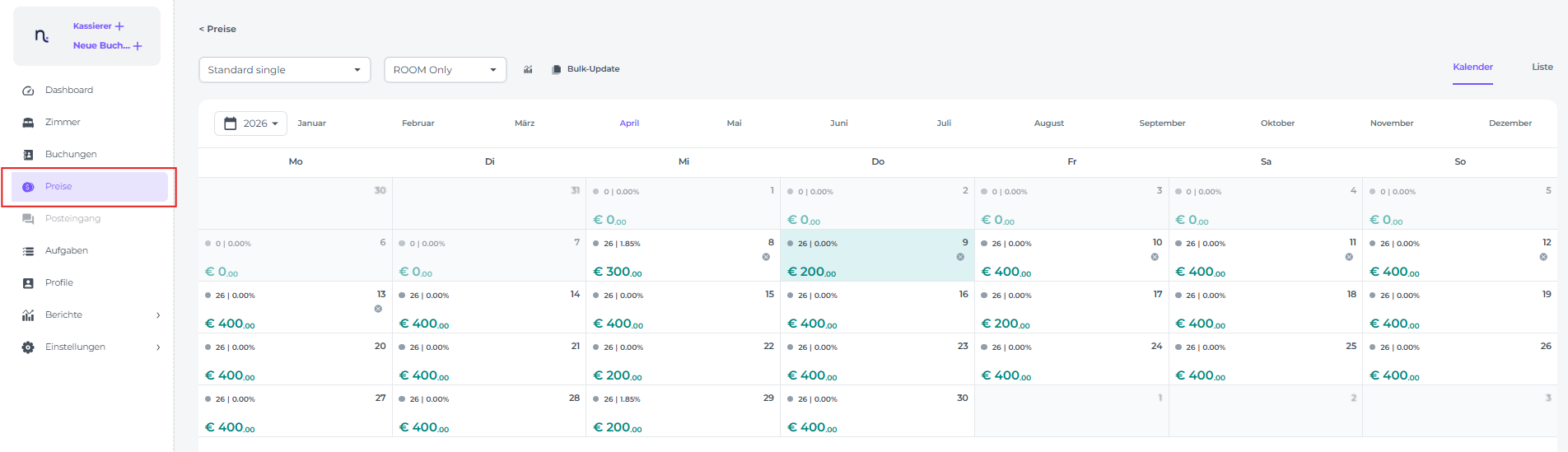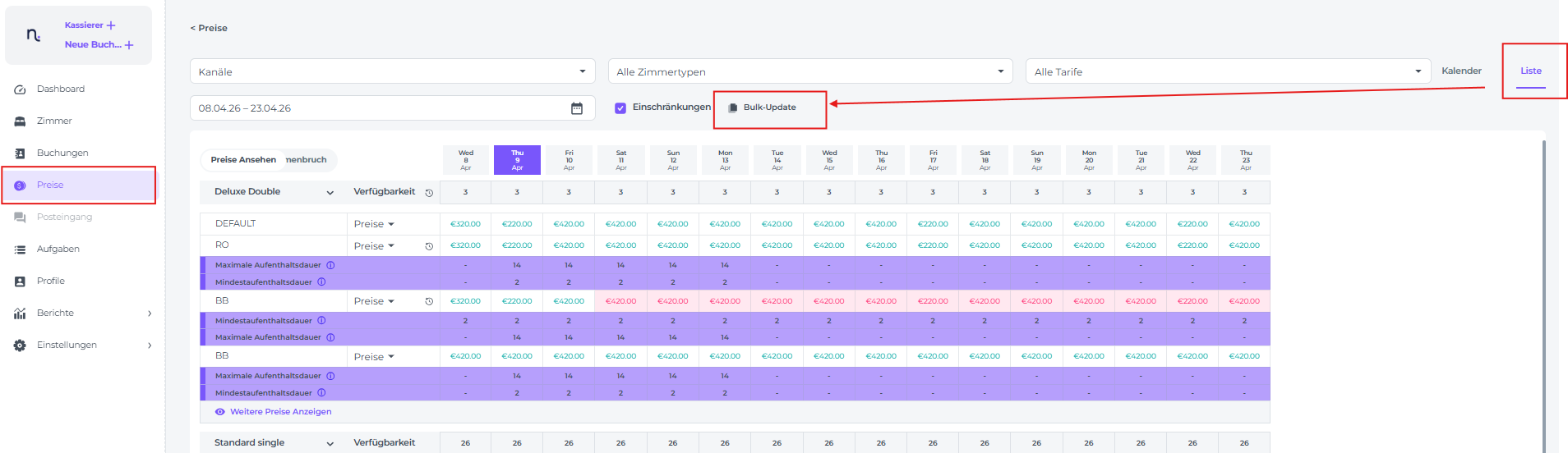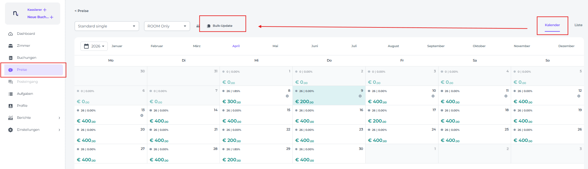 Suche zuerst die Bulk Update Funktion im Preiskalender: