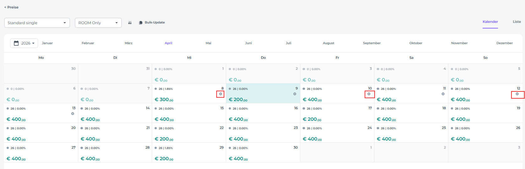 Deine neuen Regeln sind jetzt im Preiskalender sichtbar.