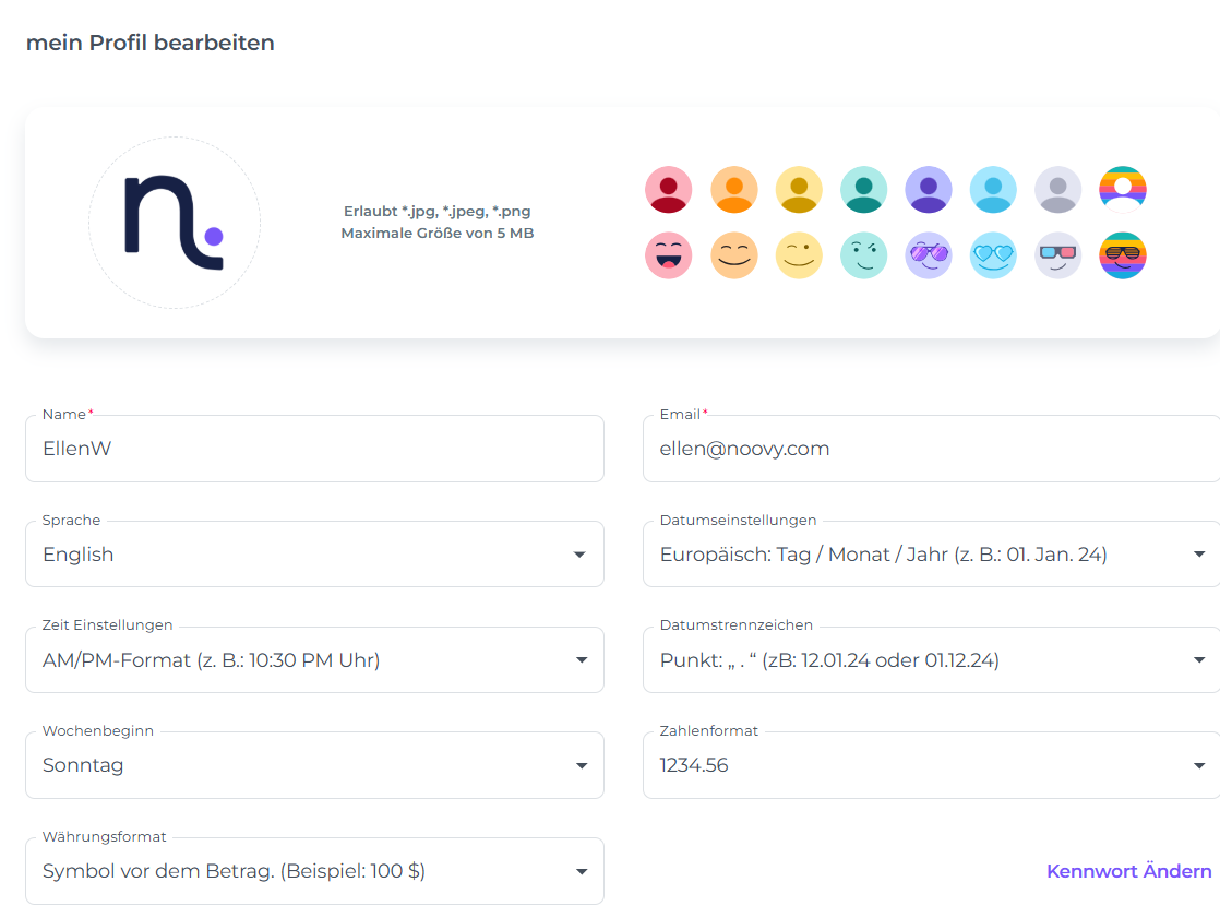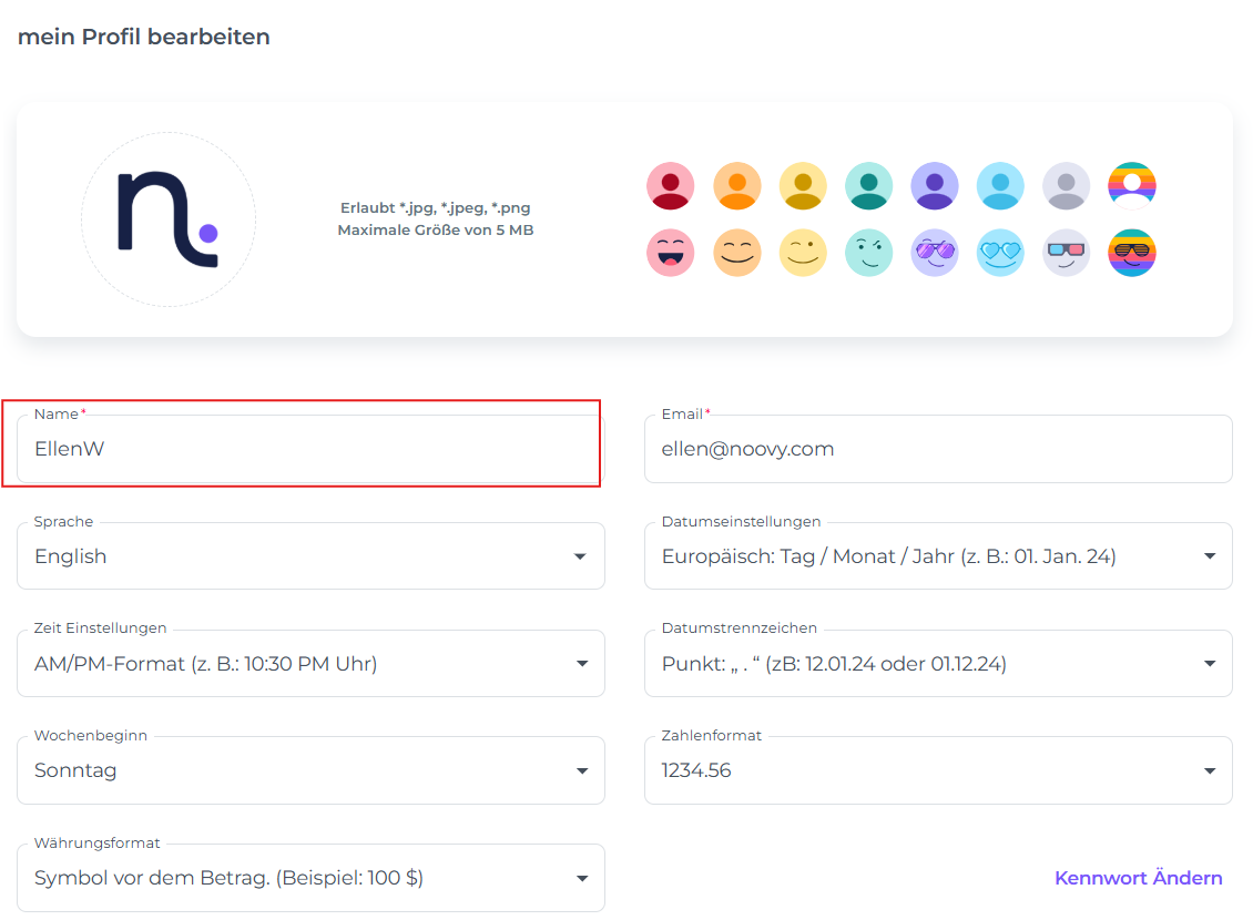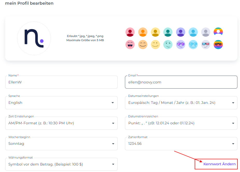 Wie Aktualisiere ich mein Noovy Benutzerprofil?