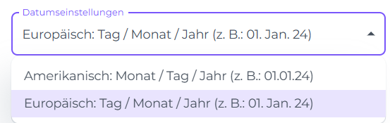 Wähle dein bevorzugtes Datumsformat (z. B. Europäisch oder Amerikanisch)