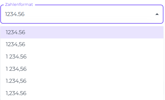 Wähle dein bevorzugtes Zahlenformat aus