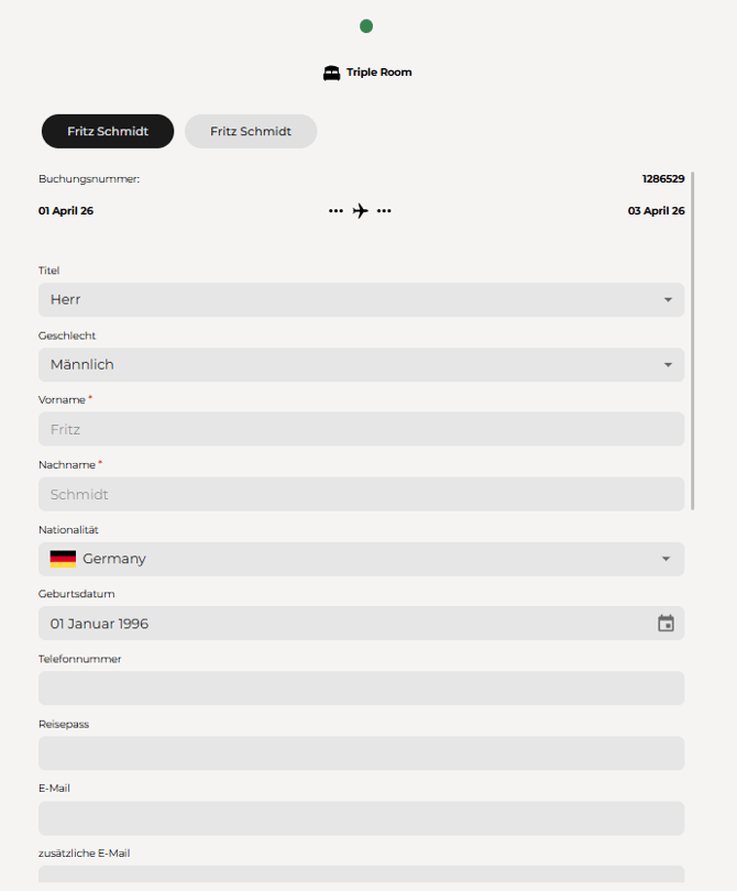 Obligatorischer Hauptgast, versteckte Andere Gäste : Erfordert diese Information nur vom Hauptgast; für alle anderen Gäste bleibt das Feld verborgen.