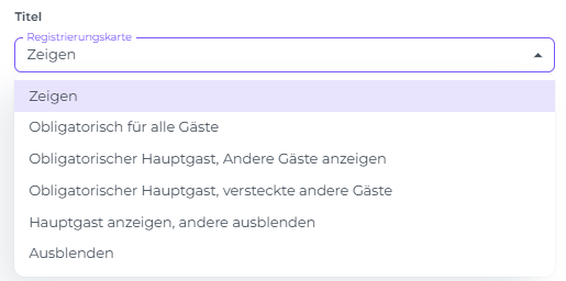 Um das Online Check-in Formular zu konfigurieren, öffne die Dropdown-Menüs für die Registrierungskarte Felder :