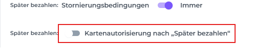 Um dies zu aktivieren, schalte einfach den Regler bei „Kartenautorisierung nach Später bezahlen“ ein.