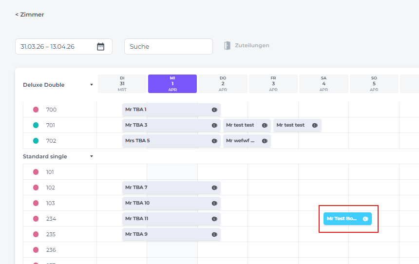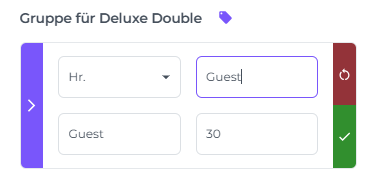 Um die übernachtenden Gäste zu identifizieren, klicke auf das Stift-Symbol in der Gruppe für den jeweiligen Zimmertyp.