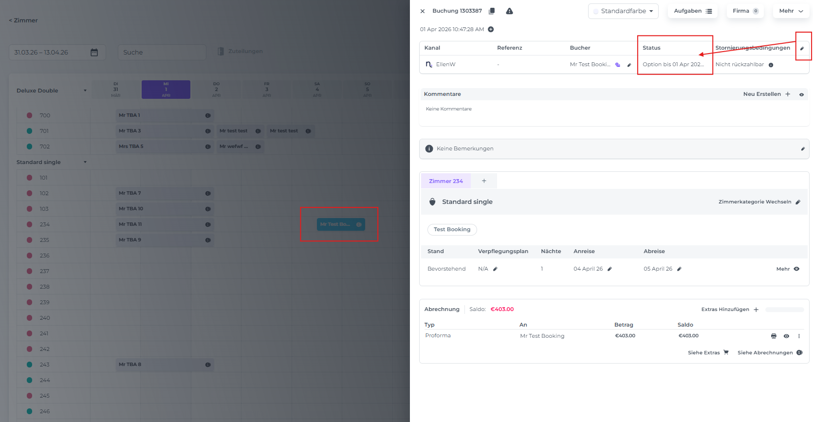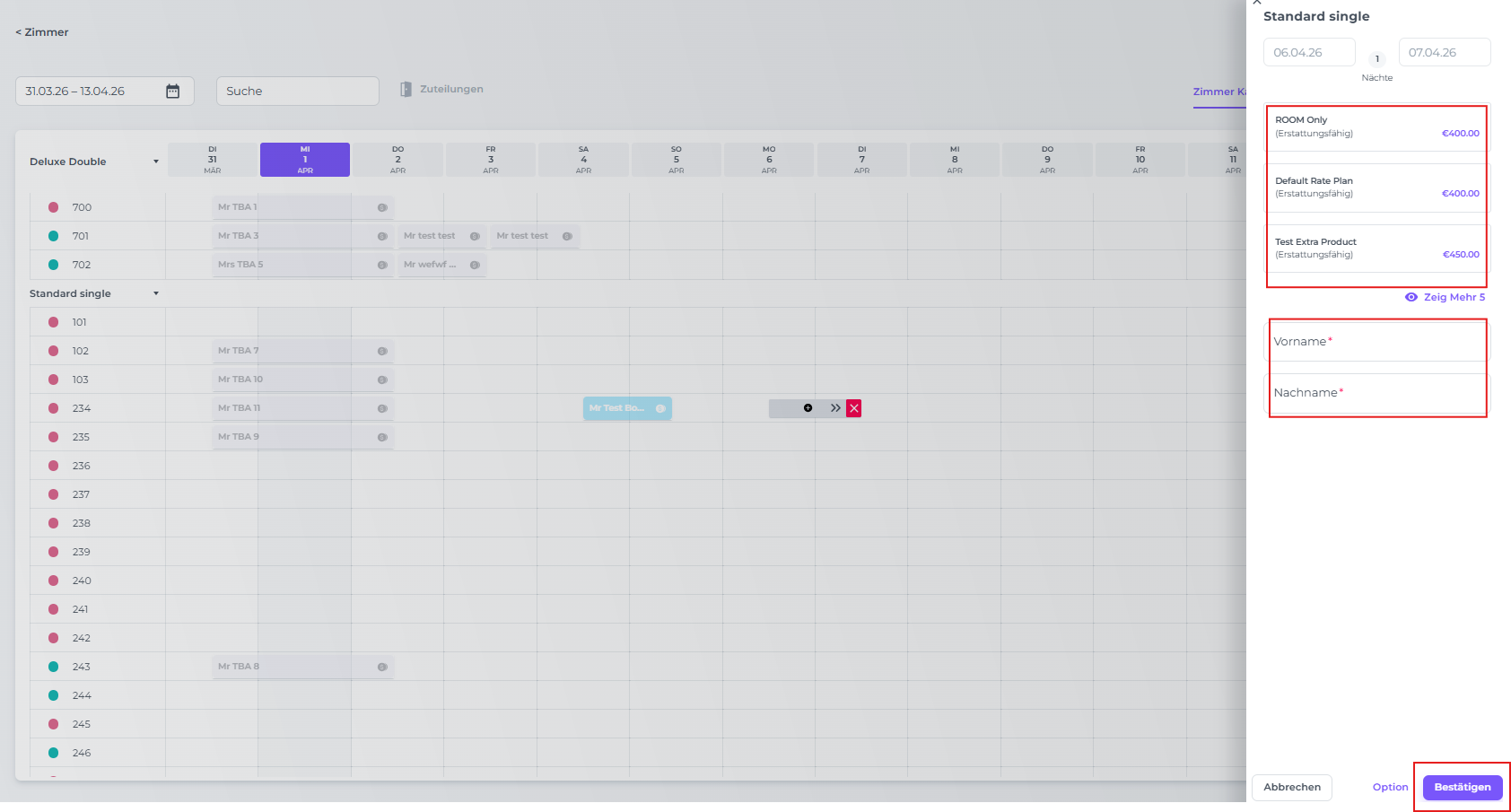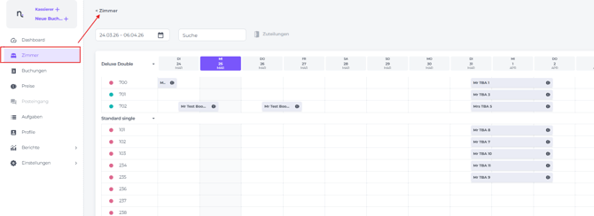 2. Eine Buchung über den ZIMMERKALENDER erstellen