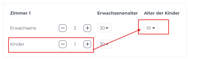 Bei der Auswahl der Anzahl der Kinder kannst du deren Alter angeben.