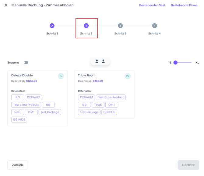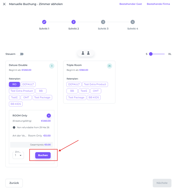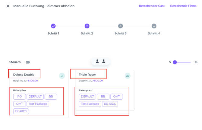SCHRITT 2: Zimmertyp und Ratenplan