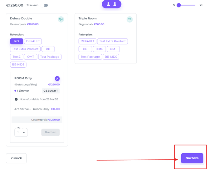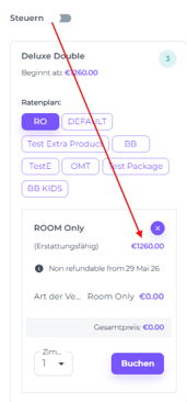 Wähle den Zimmertyp aus, indem du den gewünschten Preistyp in diesem Zimmertyp anklickst.