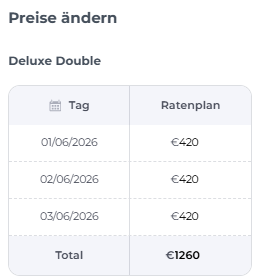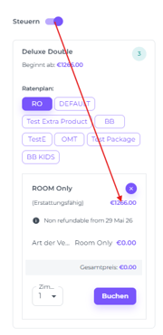 Zimmertyp und Ratenplane