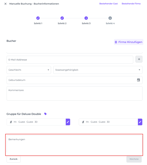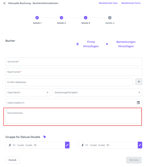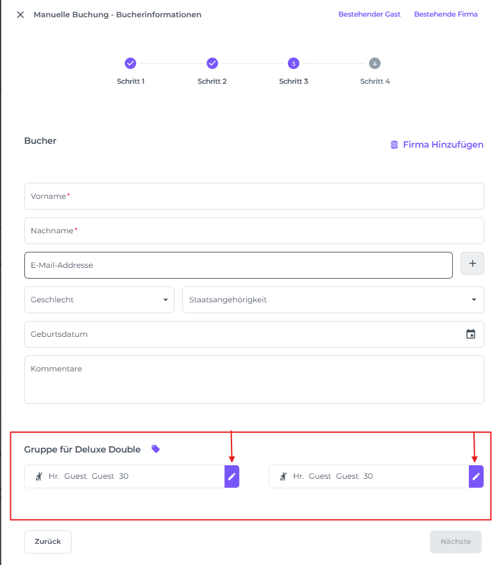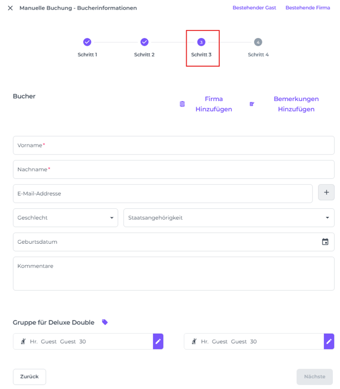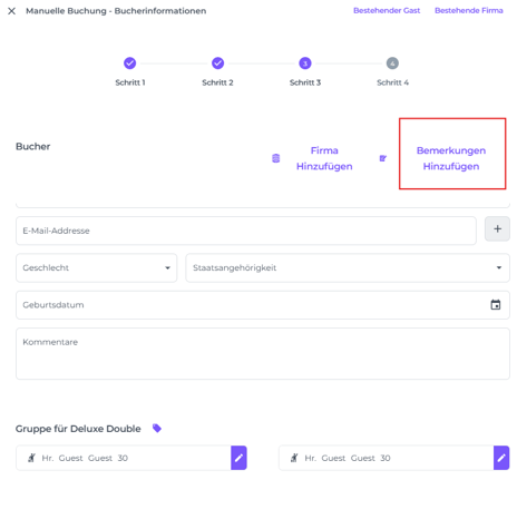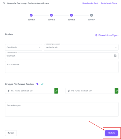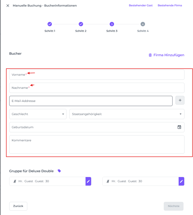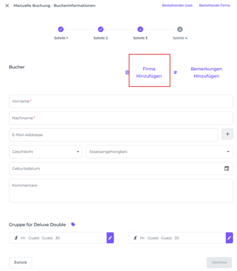 SCHRITT 3: Details zum Buchenden, Gast und Unternehmen