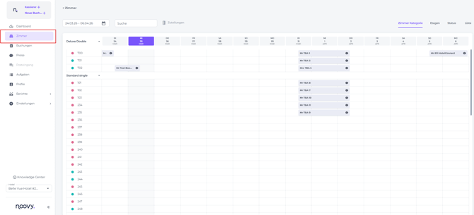 - Klicke im Hauptmenü auf Zimmer.