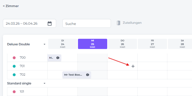 - Fahre mit der Maus über das Anreisedatum. Wenn das Plus-Zeichen (Kreuz) erscheint, klicke darauf.