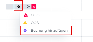 - Klicke auf das Kreuz > Ein Dropdown-Menü erscheint: Wähle Buchung hinzufügen.