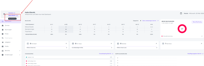 Hinweis: Unabhängig davon, wo du dich im System befindest, kannst du jederzeit eine neue Buchung über die Schaltfläche Neue Buchung in der oberen linken Ecke deines Bildschirms erstellen.