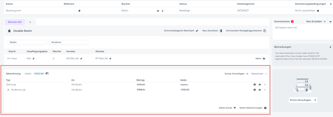• Navigiere zum Bereich Abrechnung auf der Reservierungsseite: