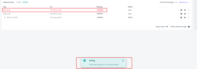 • Sobald die Rückerstattung erfolgreich war, bestätigt das System dies durch eine kurze Benachrichtigung.