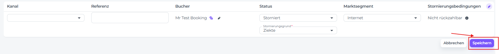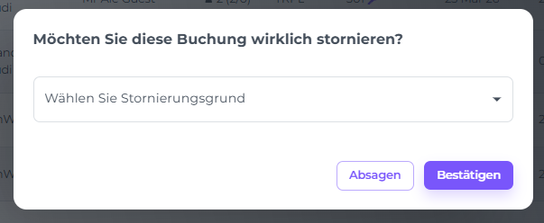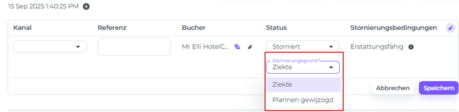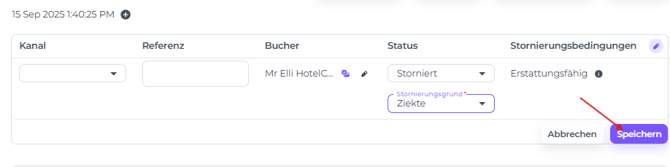 - Klicke auf Speichern, nachdem du den entsprechenden Stornierungsgrund ausgewählt hast.